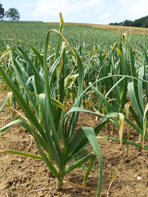 L’ail a pour origine l'Asie centrale, puis il s’est répandu progressivement en Extrême-Orient, en Arabie, en Égypte et dans le Bassin méditerranéen. Ce bulbe serait l’un des légumes les plus anciennement cultivés par l’homme qui l’utilisait tant pour son alimentation que pour sa santé. 1 Plante herbacée érigée, habituellement cultivée comme annuelle à partir de caïeux. La tige vraie constitue un plateau à la base de la plante, avec des racines adventives en dessous. Le bulbe est blanc à violacé, composé de caïeux sessiles, formés à l’aisselle des dernières feuilles. Chaque caïeu est formé d’une tunique protectrice, d’une gaine foliaire charnue et d’un petit bourgeon central. Une fausse tige est constituée par l’emboitement des gaines foliaires des feuilles successives. Les feuilles sont alternes et le limbe est linéaire-oblong, quasi-plat ou en forme de V en section transversale, aigu à l’apex, à bords lisses ou crénelés. L'inflorescence est une ombelle sphérique qui peut atteindre 2,5 cm de diamètre. Elle se situe à l’extrémité d’une hampe pleine d’abord enroulée en crosse, puis en cor de chasse et se redressant à la fin. L'ombelle est composée de fleurs et de bulbilles, ou seulement de bulbilles, enveloppée au début d’une spathe membraneuse. Les fleurs sont généralement peu développées ou absentes, le fruit est avorté et sans graines. 2 La variabilité génétique observée provient essentiellement de mutations progressives. Messiaen a décrit et classé ces variabilités physiologiques, phénotypiques et biochimiques selon une nomenclature en 6 groupes pour les variétés occidentales. Les groupes 1, 2, 3 et 4 prédominent en Europe. Citons ainsi pour la France : au sein du groupe 3 les types hiver Rougeâtre de Vendée, Violet de Cadours, Blanc de Beaumont (ou Blanc de Lomagne), Blanc de la Drôme ; pour le groupe 1 le type alternatif Rose de Lautrec, pour le groupe 2 les types printemps Rose du Var, Rose d'Auvergne, Rose du Nord. 3
