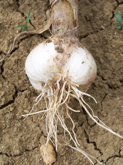 Allium sativum est une espèce à multiplication végétative qui aurait perdu son aptitude à la multiplication sexuée au cours de la diversification des Allium. 3 Au cours de son cycle de vie, la plante passe par plusieurs phases successives de croissance et de développement. La dormance des caïeux mûrs, induite par des températures de 25–30°C, est stoppée autour de 6–7°C. La croissance végétative est la plus rapide à 18–20°C. Quand 12–14 feuilles ont été produites (les premières ont disparu quand les dernières sont émises), le renflement du bulbe intervient pour des températures supérieures à 20°C, dès lors que la photopériode dépasse un seuil de 12–15 heures ( variable selon le cultivar), et qu’un “besoin de froid” après l’élimination de la dormance ait été préalablement satisfait. Le cycle complet varie de 4 mois (sous les tropiques, ou pour les cultivars fortement dormants plantés au printemps en climat tempéré) à 9 mois (pour des cultivars moins dormants plantés à l’automne sous un climat nord-méditerranéen). En conditions optimales d’altitude et de latitude, certains cultivars d’ail (ceux d’Asie centrale ou d’Espagne) peuvent produire des inflorescences. Mais seuls certains cultivars d’Asie centrale et du Caucase produisent des fleurs bien développées et des graines, à condition que les bulbilles présents parmi les boutons floraux aient été éliminés précocement. 2