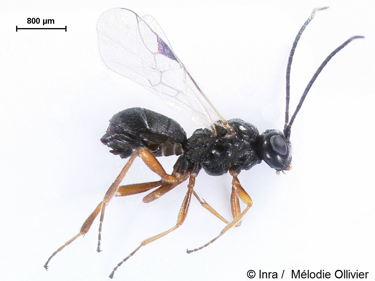 C'est une petite guêpe parasitoïde mesurant entre 2 et 2,4 mm de long.1