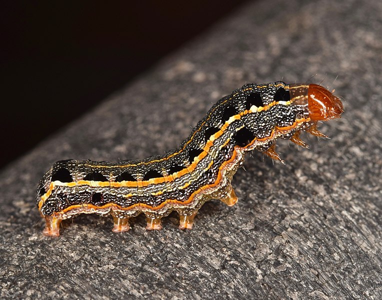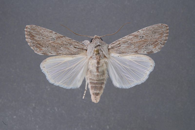 Cette noctuelle fait des dégats sur plus de cinquante espèces de plantes différentes bien que son hôte de prédilection soit Amaranthus. Le pic d'activité se trouve d'octobre à novembre. L'adulte a une envergure de 33 à 35 mm. Les ailes antérieures sont grises brunâtre avec des stries sombres et les postérieures sont blanches.1