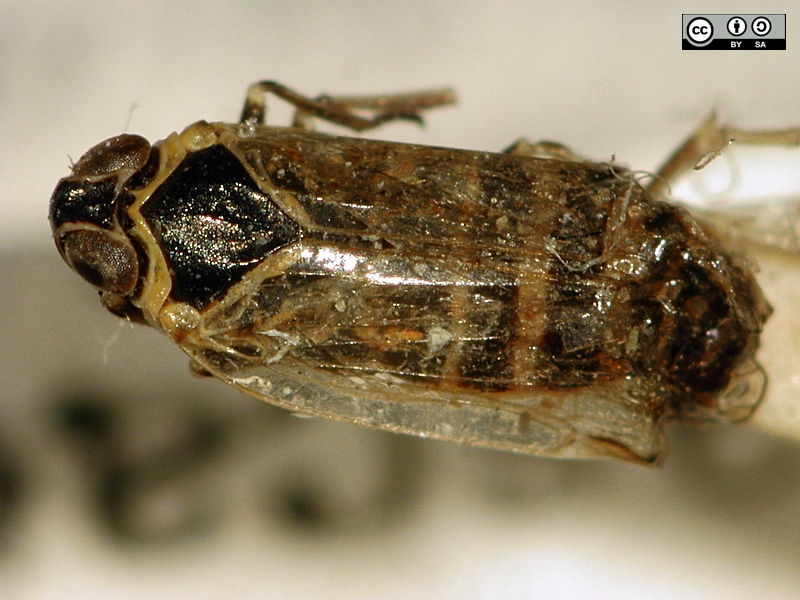 La cicadelle adulte mesure de 3 à 4 mm de long, et possède des yeux rouges, ainsi que des ailes translucides. Le corps est de couleur sombre, et la tête troquée en avant. 1 La femelle est un peu plus grande que le mâle. Les larves souterraines et lucifuges (fuyant la lumière) sont blanchâtres et entourées d’une sécrétion cireuse aux premiers stades, puis munies d’une touffe de poils cireux à l’extrémité de l’abdomen. Elles font 2 à 3 mm de long. 1