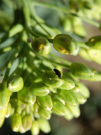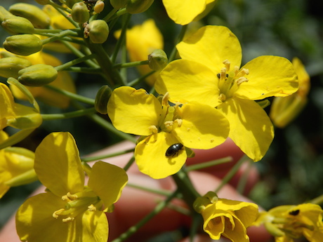 Coléoptère noir brillant, long de 1,5-2,5 mm, qui ronge les boutons floraux. Les plantes présentent ensuite de nombreuses fleurs avortées et des pédoncules sans silique; parmi celles qui restent, certaines sont tordues.