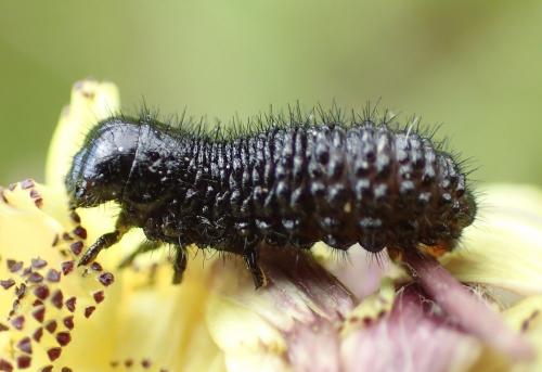 Autre nom: Colaspidema barbarum C'est un coléoptère mesurant 4 à 6 mm de long. Les larves, de 1,25 mm, sont d'abord jaune puis deviennent noire brillantes.