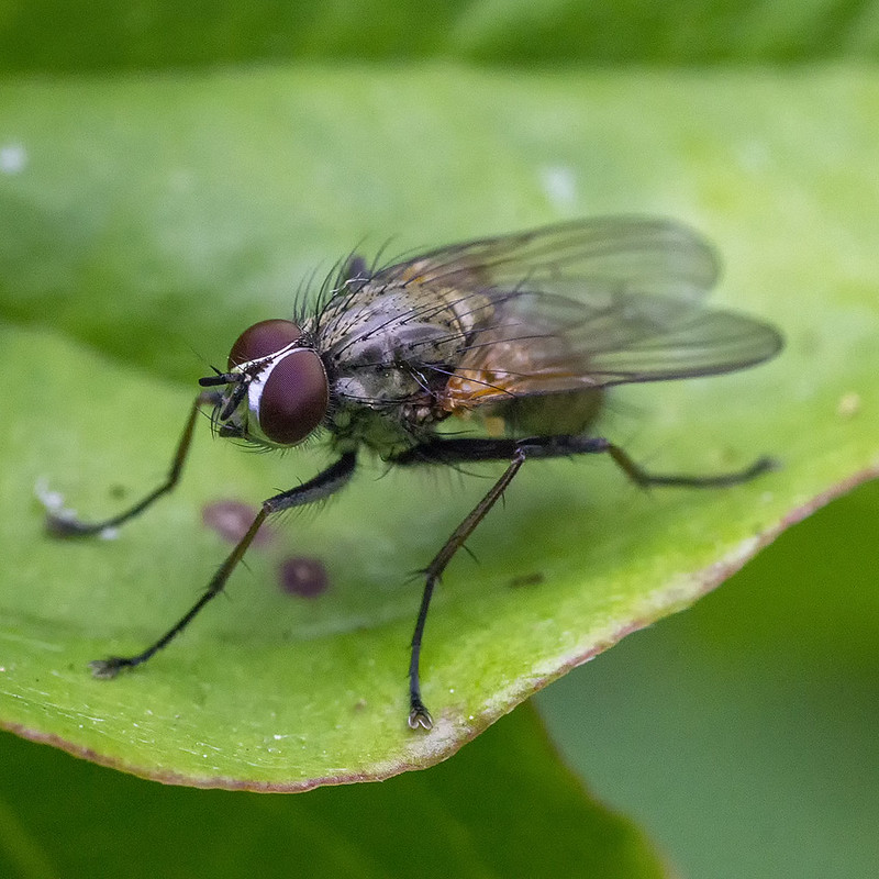 L'adulte est une mouche grise de 3 à 6 mm de longueur. Son thorax gris jaunâtre et son abdomen sont ornés d'une bande longitudinale médiane brunâtre; ses pattes sont noires . Les œufs sont blancs nacrés, allongés et mesurent environ 1 mm de long. La larve est un asticot blanc de 5 à 8 mm de long à son complet développement. La pupe rouge-brune mesure environ 5 mm de long.1 Cycle Biologique