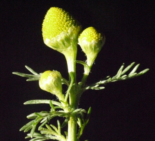 Plante annuelle de 5-40 cm, de la famille des Asteracées (pissenlits, marguerites, chrysanthèmes, ...). Les capitules n'ont pas de ligules (contrairement aux marguerites, dont les ligules (les fleurs en périphérie de l'inflorescence) sont blanches), mais seulement des fleurs jaunes-verdâtres. La tige est pleine, à section ronde, glabre.1