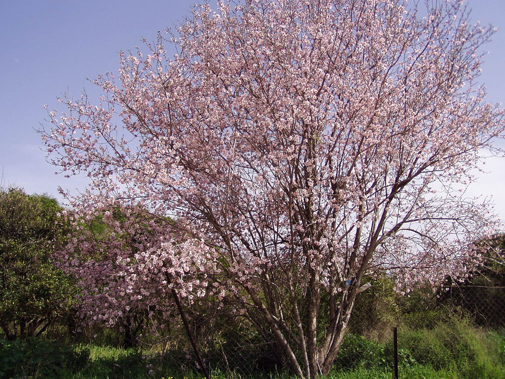 L'amandier est un arbre pouvant mesurer de 5 à 12 m. Il est composé de racines puissantes et pivotantes et ses fleurs sont blanches ou roses. Il est pollinisé par les abeilles et est cultivé sur tout le littoral méditerranéen. 1 Le port naturel peut être très dressé et peu ramifié ou au contraire très touffu et retombant. Les fructifications se développent sur bouquets de mai ou sur des fleurs isolées. Les boutons floraux peuvent produire une seule fleur ou deux sur certains arbres. Entre les variétés on peut aussi bien observer des différences morphologiques que des différences physiologiques (précocité ou tardivité de la floraison). 2
