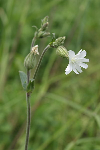 Plante vivace, velue, glanduleuse dans le haut, verdâtre. Tiges de 50 cm à 1 mètre, rameuses. Fleurs blanches, rarement roses, grandes, dioïques, odorantes et s'ouvrant le soir, en cyme dichotome. Calice oblong, à la fin renflé-ovoïde, à dents triangulaires-obtuses. Pétales bifides, couronnés d'écailles ovales, à onglet auriculé. Capsule grosse, ovale, sans carpophore, ni cloisons, à 10 dents dressées. Graines planes sur le dos. {link="http://www.tela-botanica.org/bdtfx-nn-64192-synthese"}{/reference}