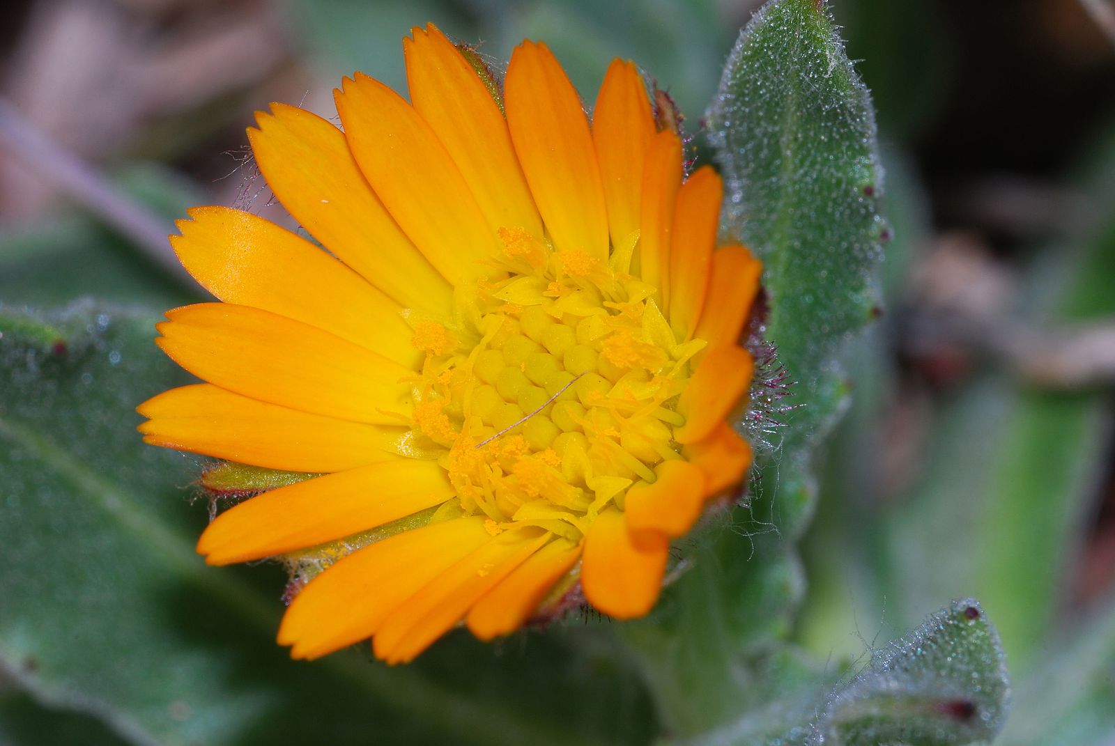 Petite plante (30 cm) dressée ou étalée des pelouses et champs, à feuilles lancéolées, aiguës, plus ou moins dentées et embrassantes et à capitule solitaire. Fleur jaune or ou orange de 1-2 cm. Cette plante produit des couronnes composées d'akènes arqués et épineux (sur l'extérieur), et d'akènes plus petits, étroits (à l'intérieur) 1 Plante dressée, pubescente, à rameaux étalés.