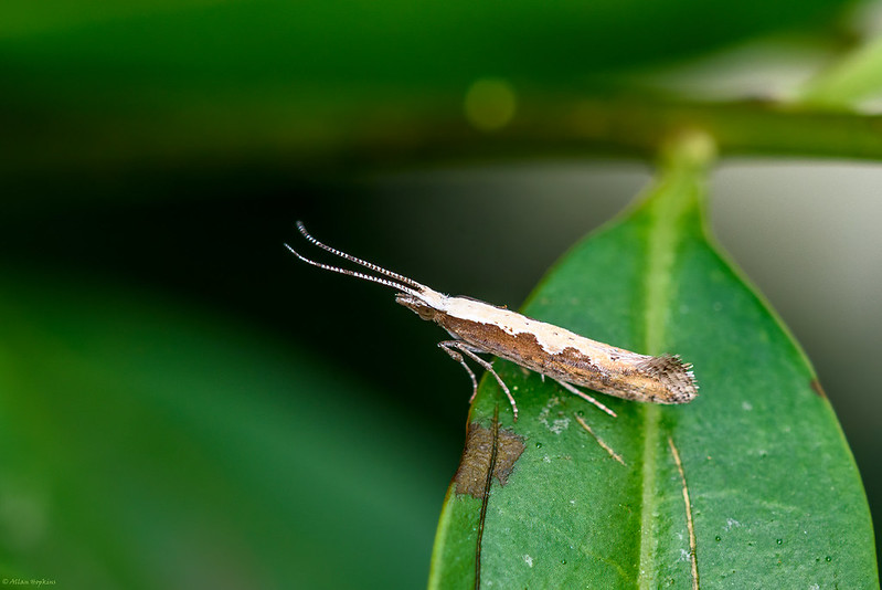 L'adulte est un papillon nocturne de 12 mm de long maximum avec une envergure de 15 mm. Il est brun avec une tête rougeâtre. Ses ailes antérieures sont longues, étroites et frangées de couleur jaune-brun. Les ailes postérieures sont aussi frangées mais courtes et gris foncé. Lorsque les ailes sont repliées, elles sont en toit et il apparaît des motifs en forme de losange jaune. La larve mesure 15 mm, elle a un abdomen vert pâle ou grisâtre et une tête brun-noir. Il est facile de la reconnaître car au moindre contact, elle se tortille et se laisse tomber au sol.12 Cycle Biologique