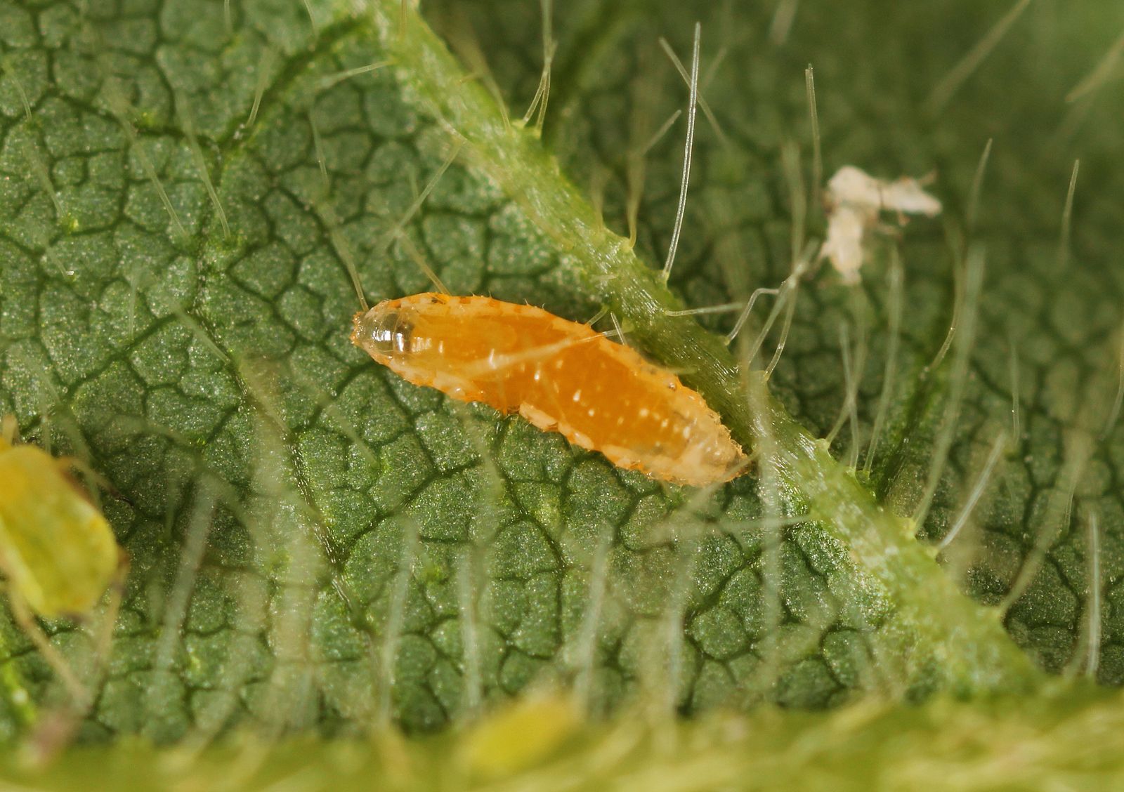 Après 1 à 2 semaines, la larve se nymphose dans le sol humide. Elle forme un cocon marron et ovale, couvert de grains de sable, de mues de pucerons et d'excrétions. 10 à 14 jours plus tard, les adultes émergent. Aphidoletes aphidimyza adulte se nourrit de miellat et vit pendant 7 à 10 jours.
