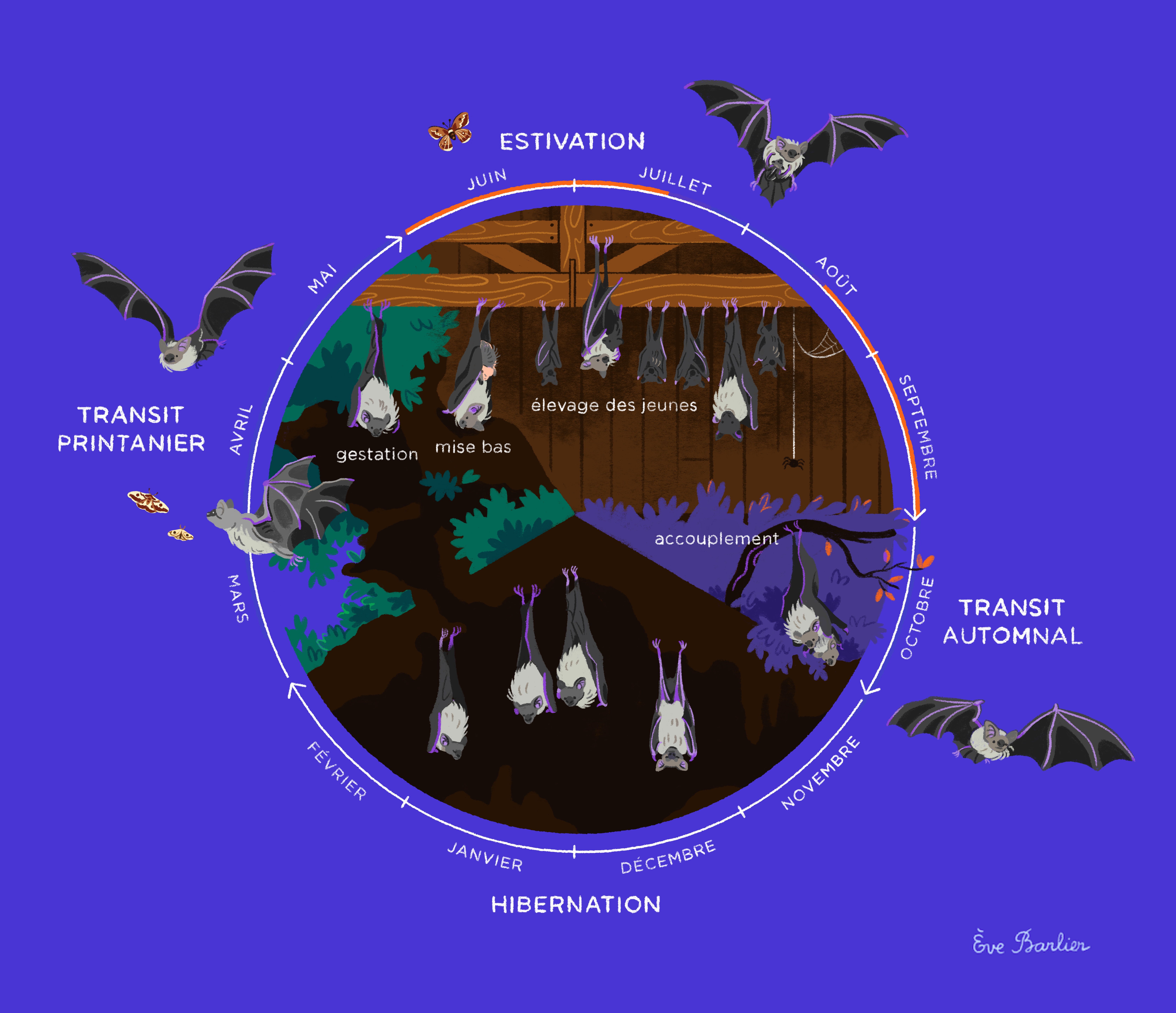 Lors de période où les chauves-souris sont actives à savoir de mars à novembre (différent des sites d'hibernation).