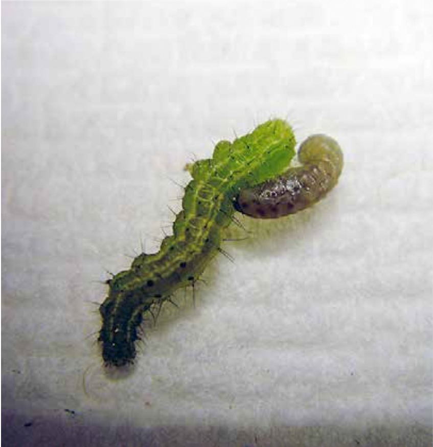 La larve de la noctuelle du chou (Mamestra brassicae) est un ravageur important du chou mais celle-ci est régulée par de nombreux auxiliaires.