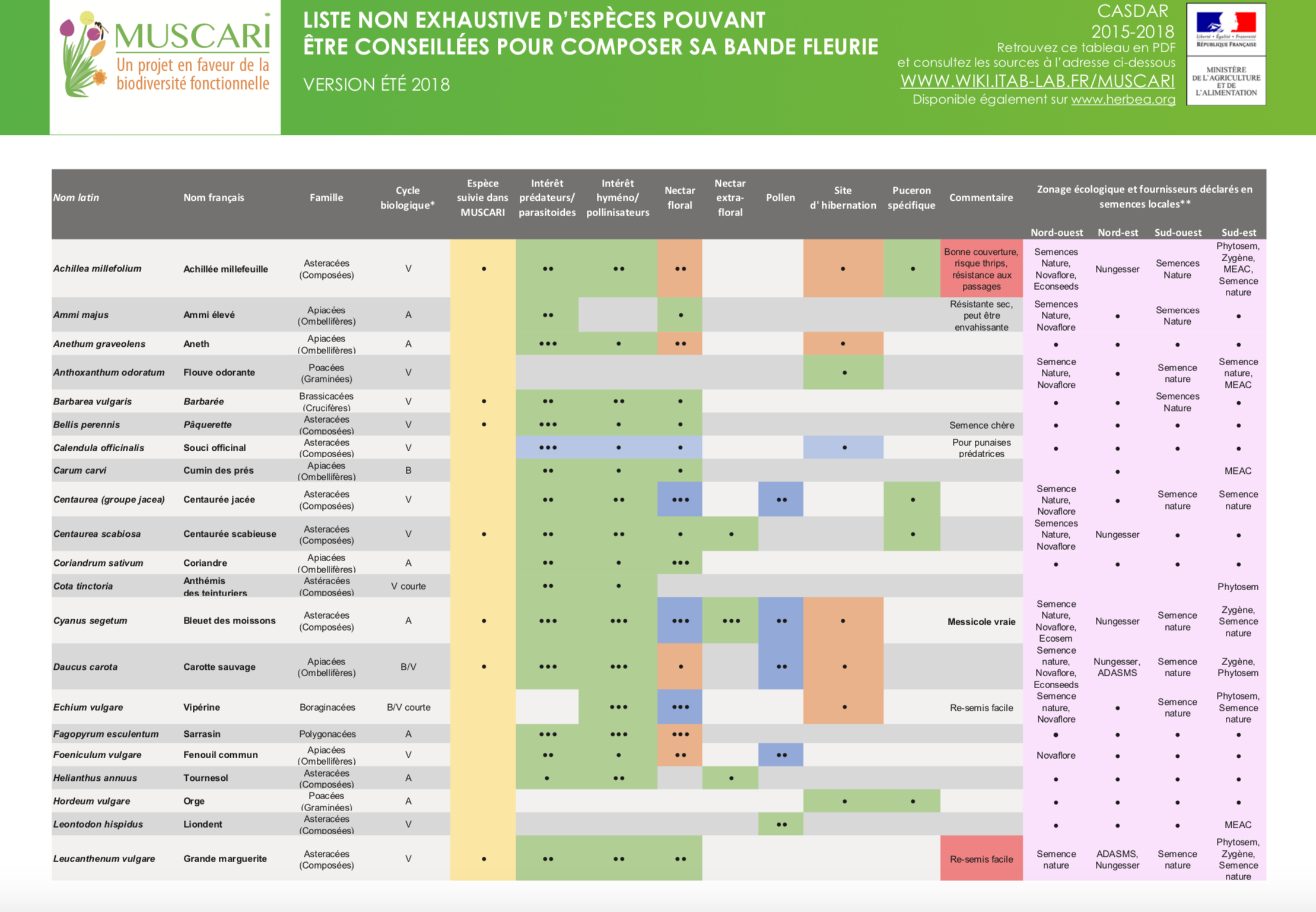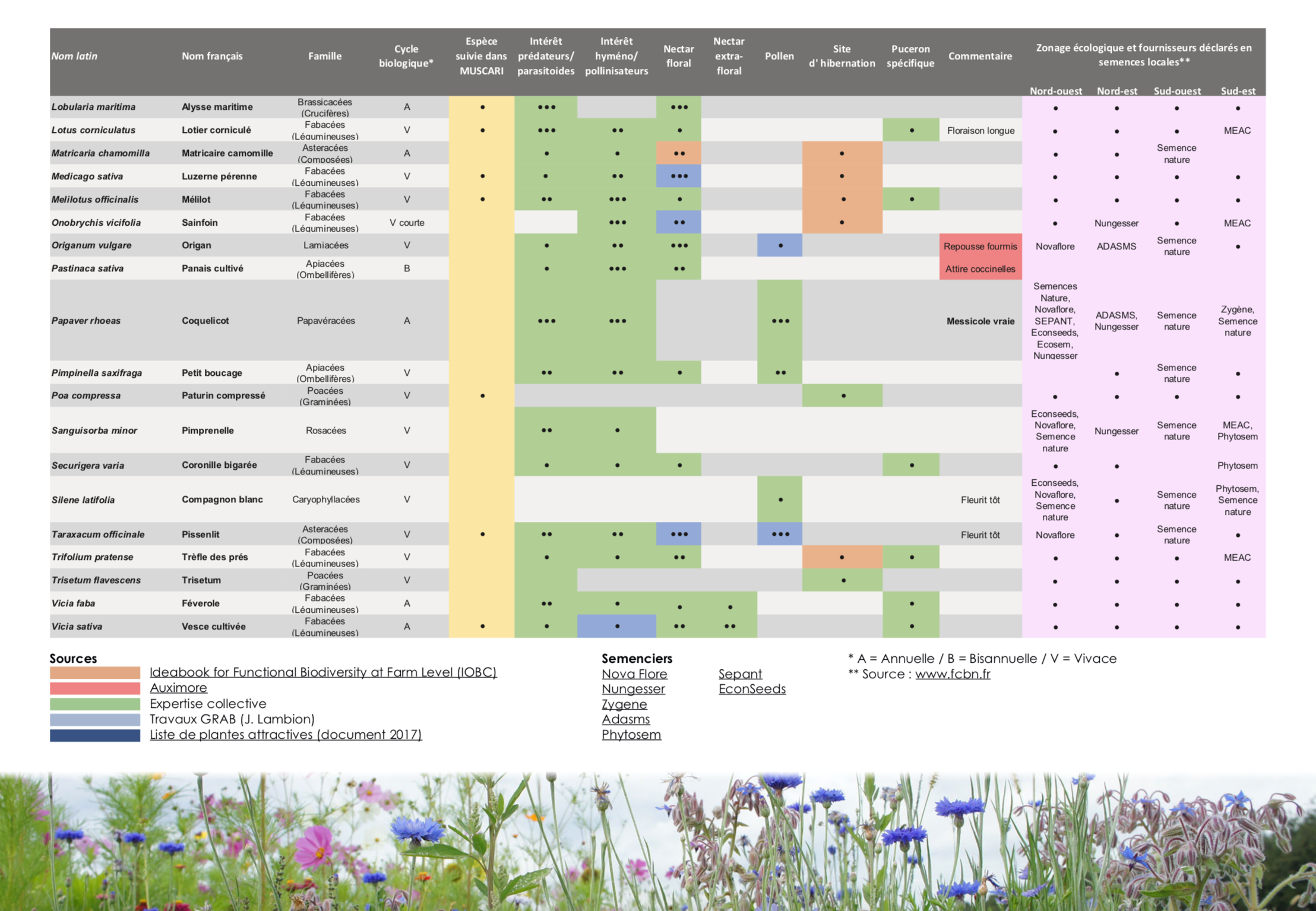 En attendant, voici une liste d'espèces florales (avec une indication des fournisseurs de semences d'origine locale) pour vous aider à composer vos bandes fleuries: