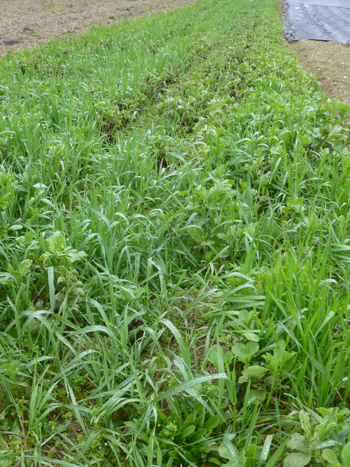 L’utilisation des engrais verts est étendue à certaines planches maraîchères. Les courges si elles ne sont pas plantées, sont alors semées directement dans l’engrais vert couché.