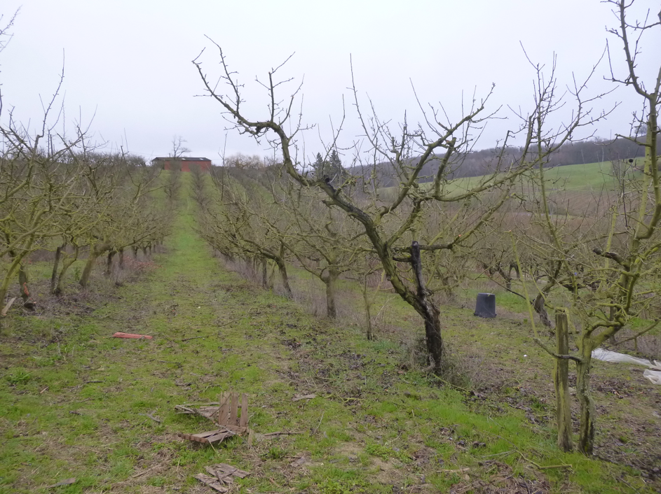 - les espèces les moins exigeantes ont été plantées vers le haut (pêchers, vignes), là où le sol est plus léger, tandis que les plus exigeantes sont situées en bas. A mi-pente ont été plantés cerisiers et pruniers.